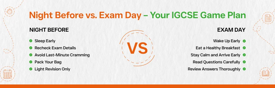 The night before and the exam morning can be stressful. Here’s how to stay calm and prepared: