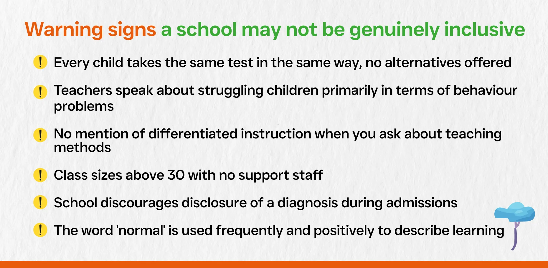 A school that says all the right things during an admissions visit but has no flexible seating, no varied assessment, and no individual attention time is a school that has not yet moved beyond policy language. Watch the classrooms. Watch how teachers interact with children who are visibly struggling. That will tell you more than any brochure.
